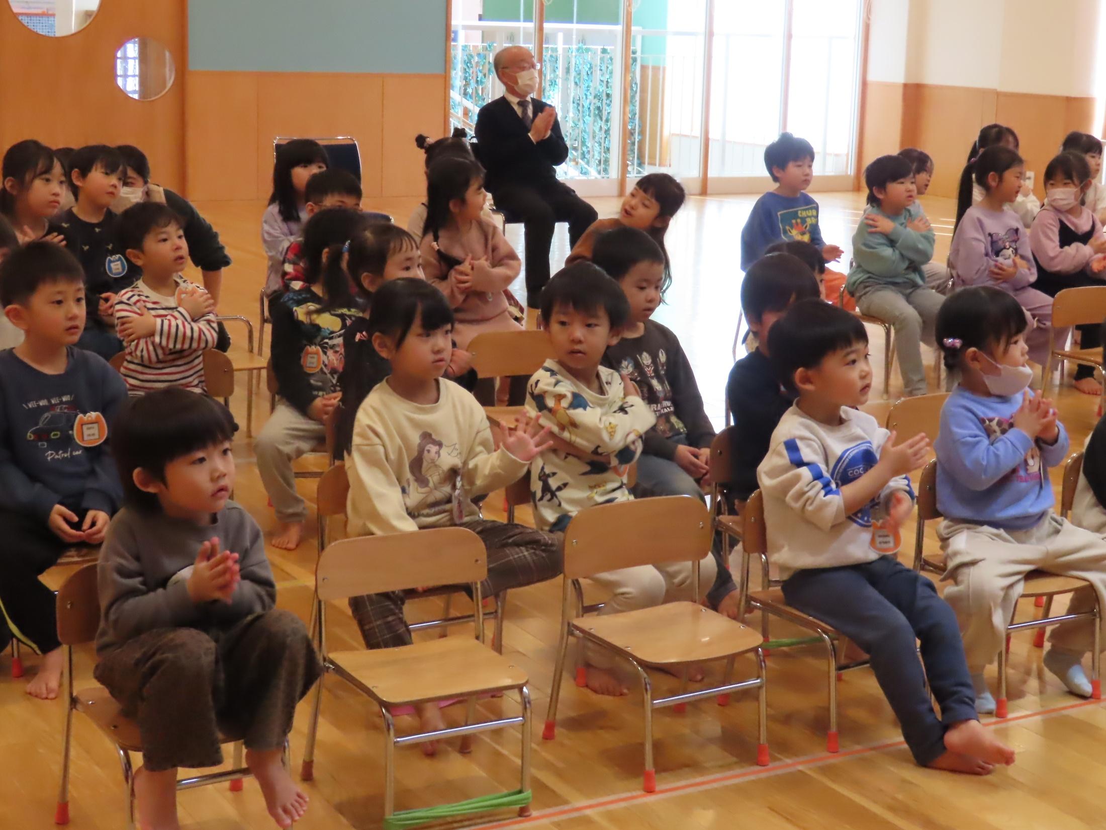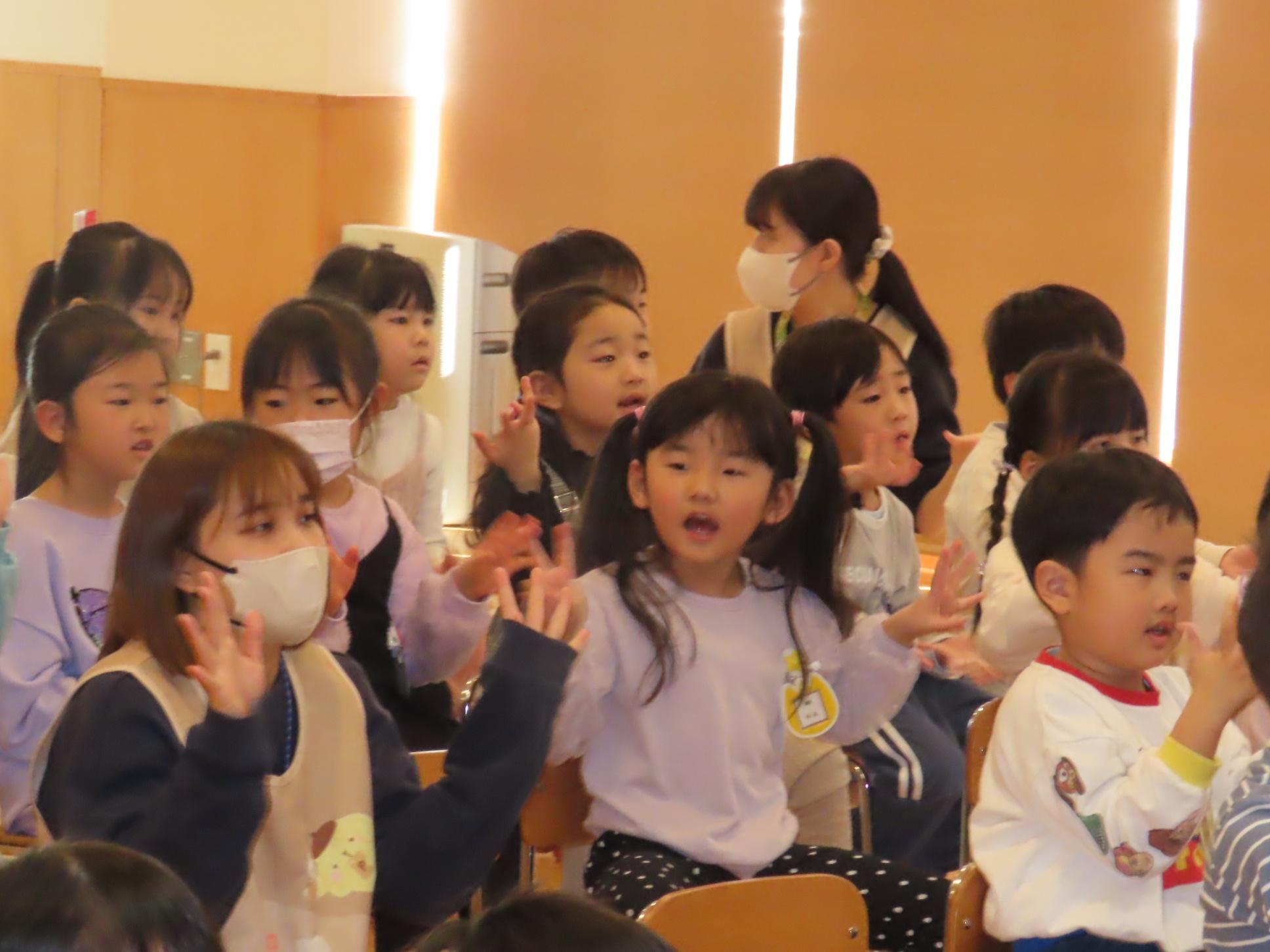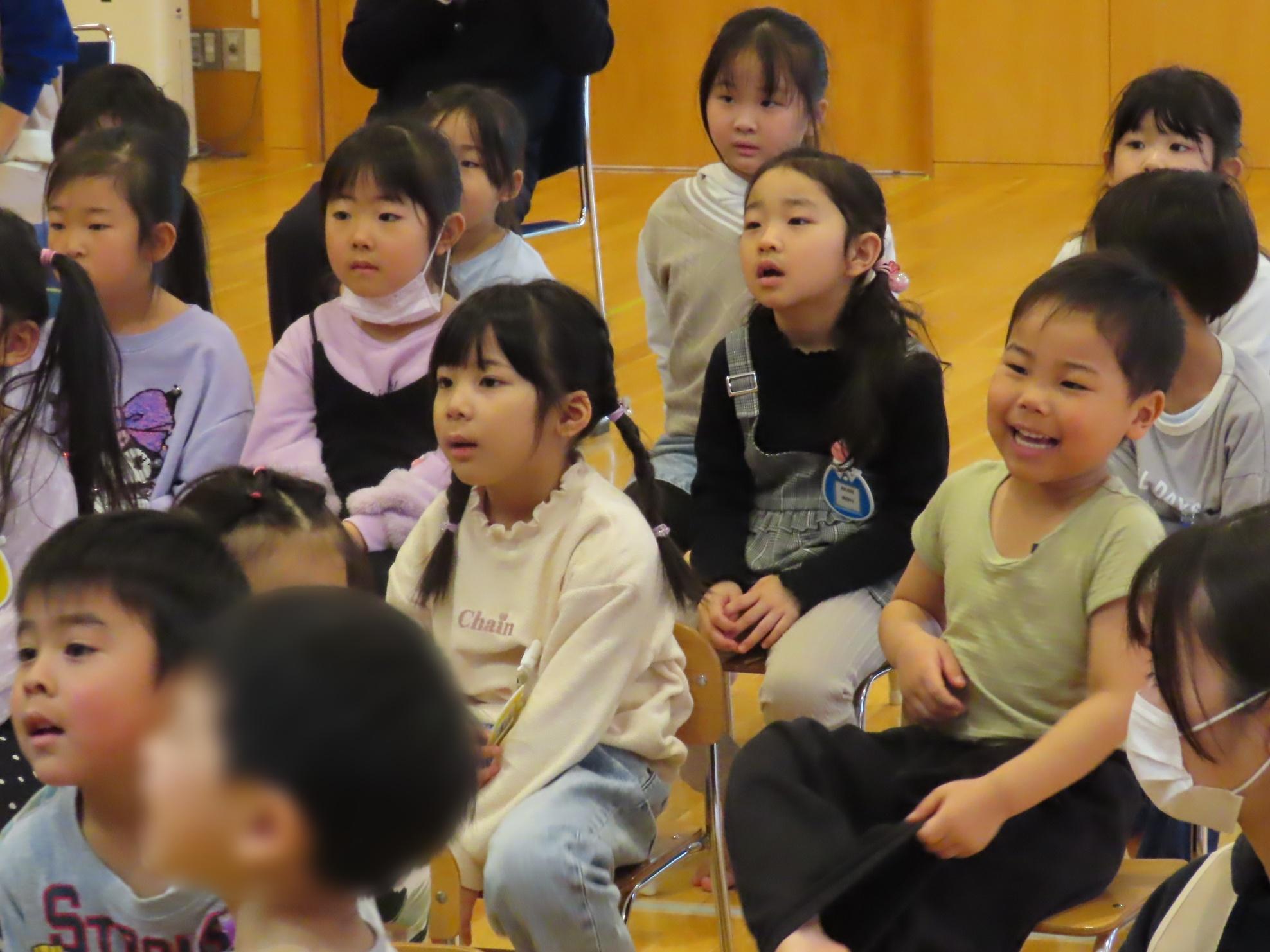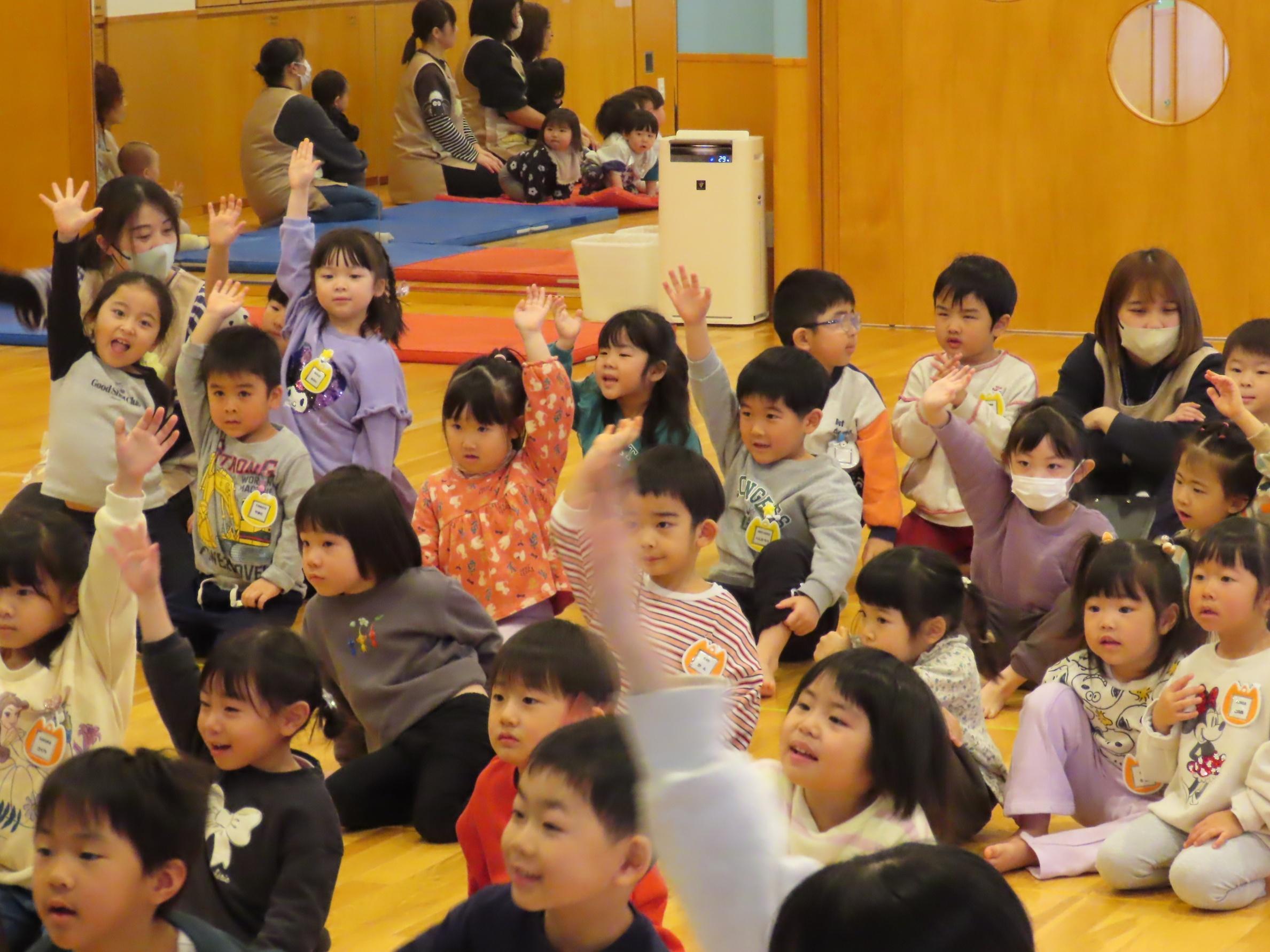 食育指導で鮭の解体を行いました。実際に鮭を持ち上げたり、調理師さんが鮭を目の前で捌いて見せてくれました。鮭クイズをして、鮭に詳しくなった子ども達です⭐