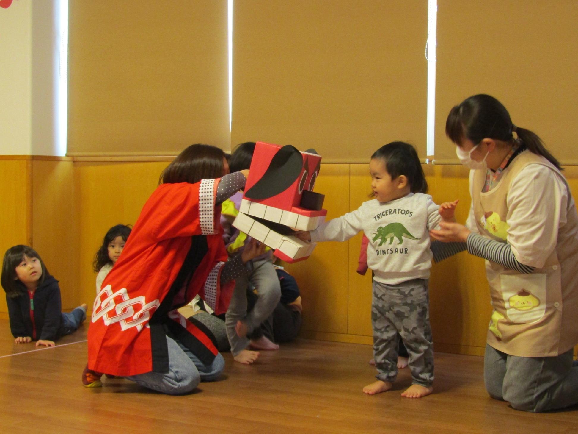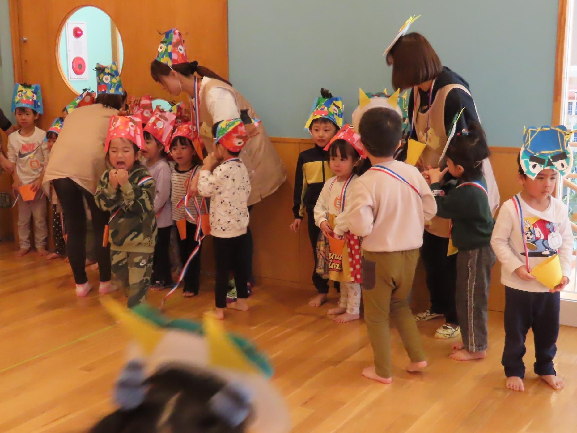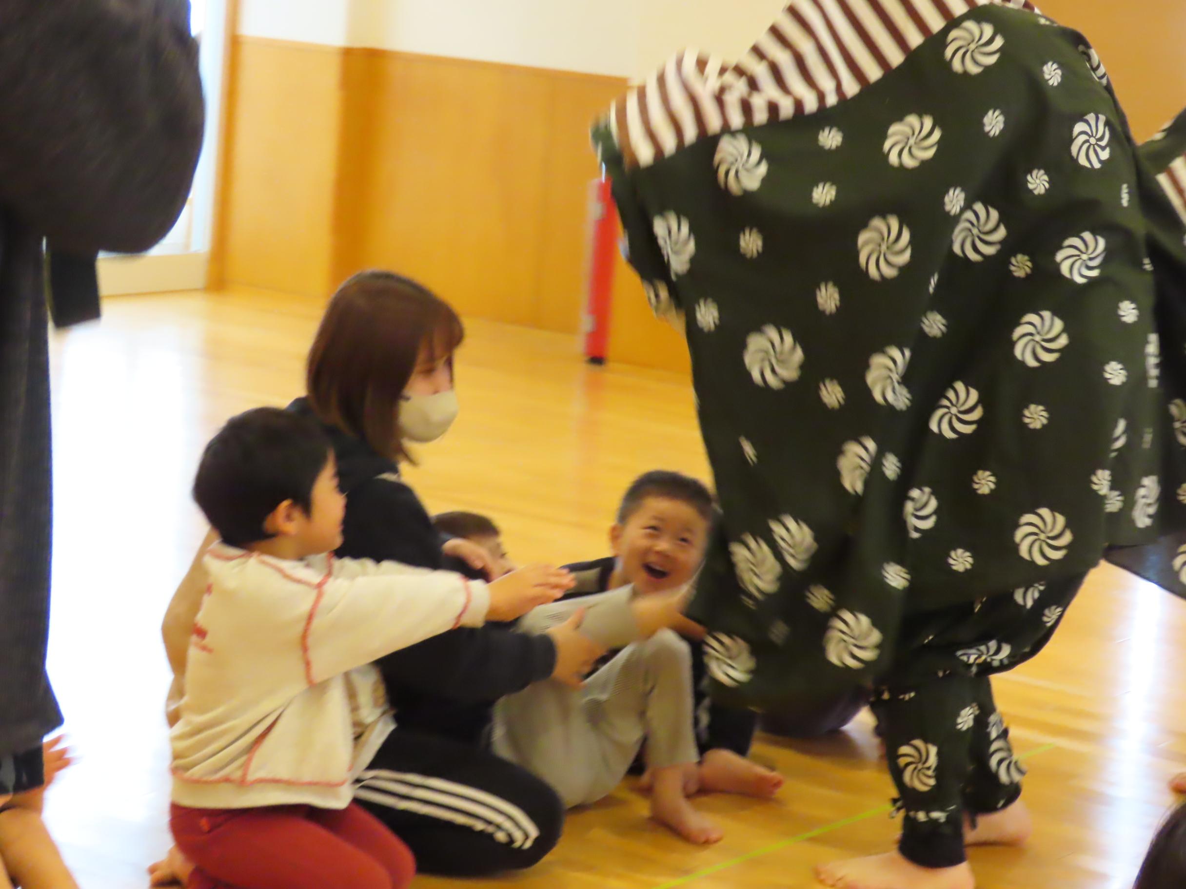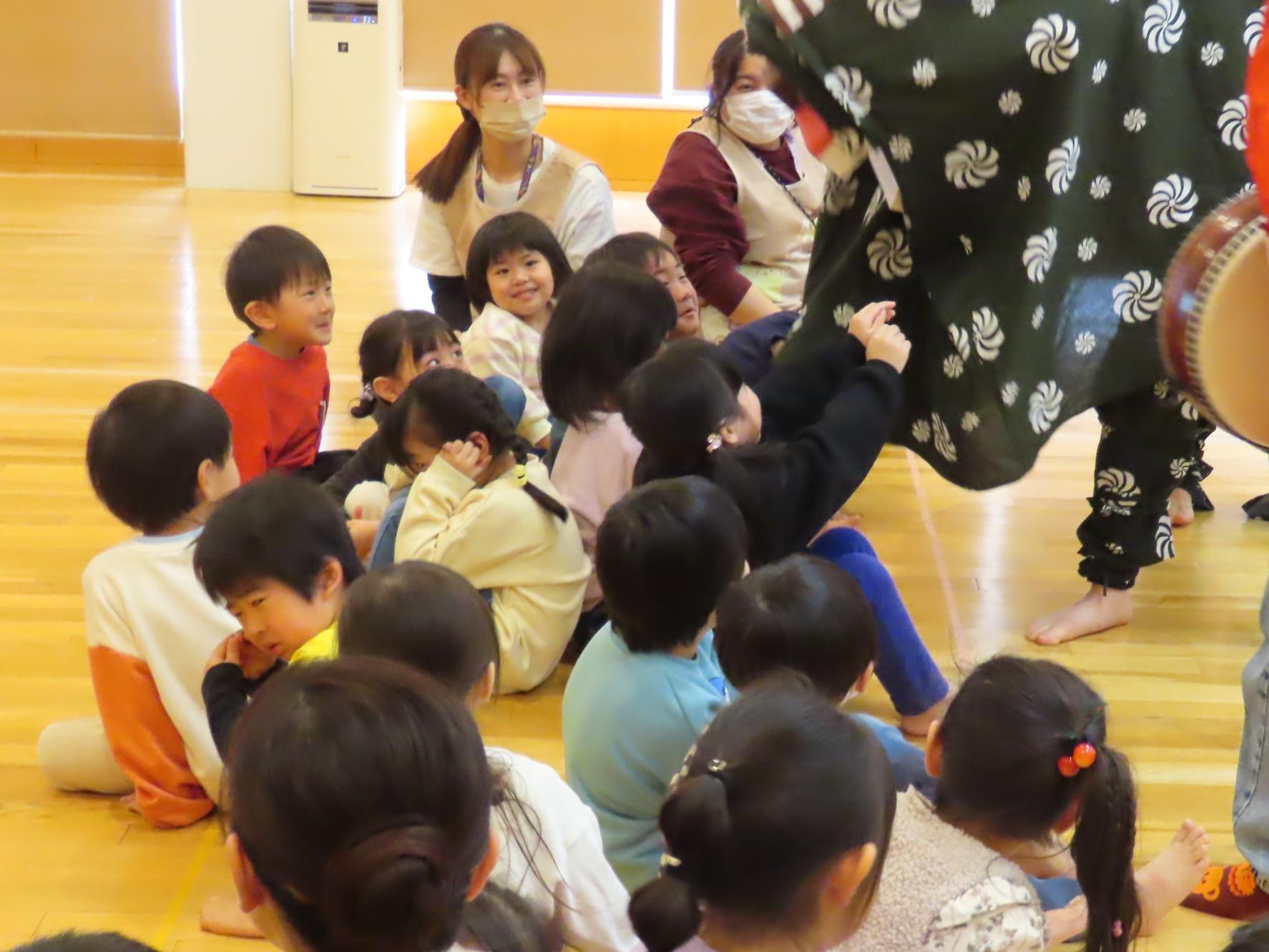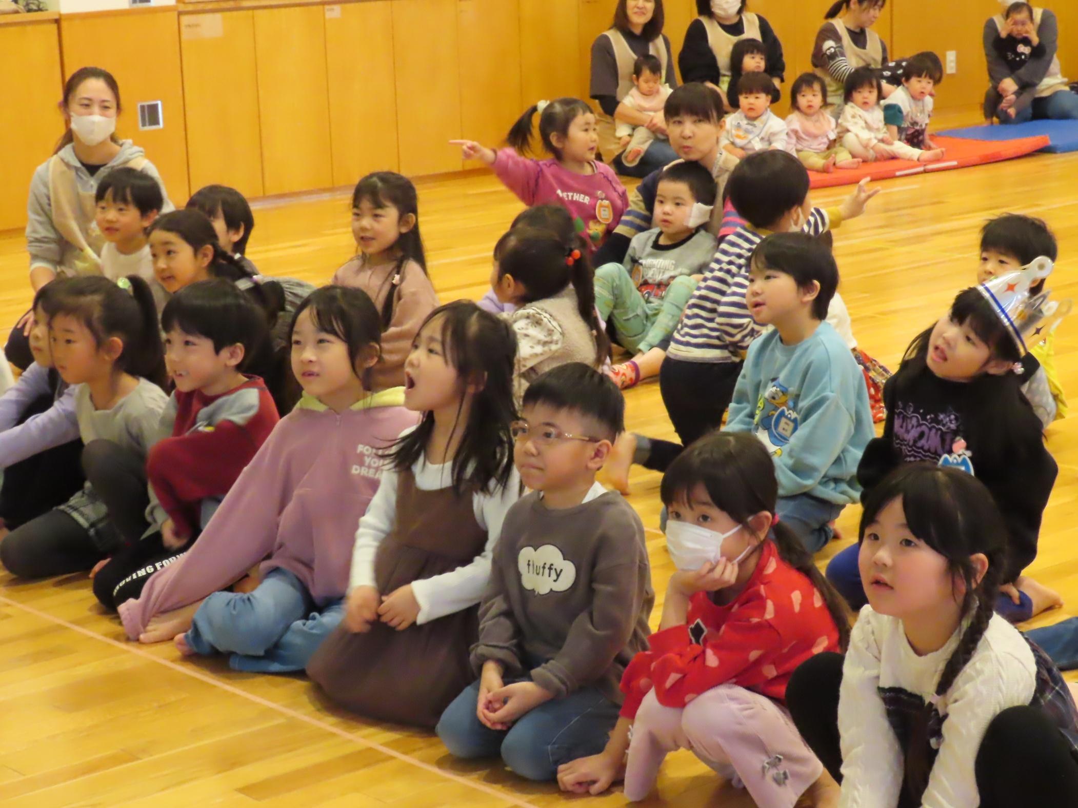 食育指導で鮭の解体を行いました。実際に鮭を持ち上げたり、調理師さんが鮭を目の前で捌いて見せてくれました。鮭クイズをして、鮭に詳しくなった子ども達です⭐